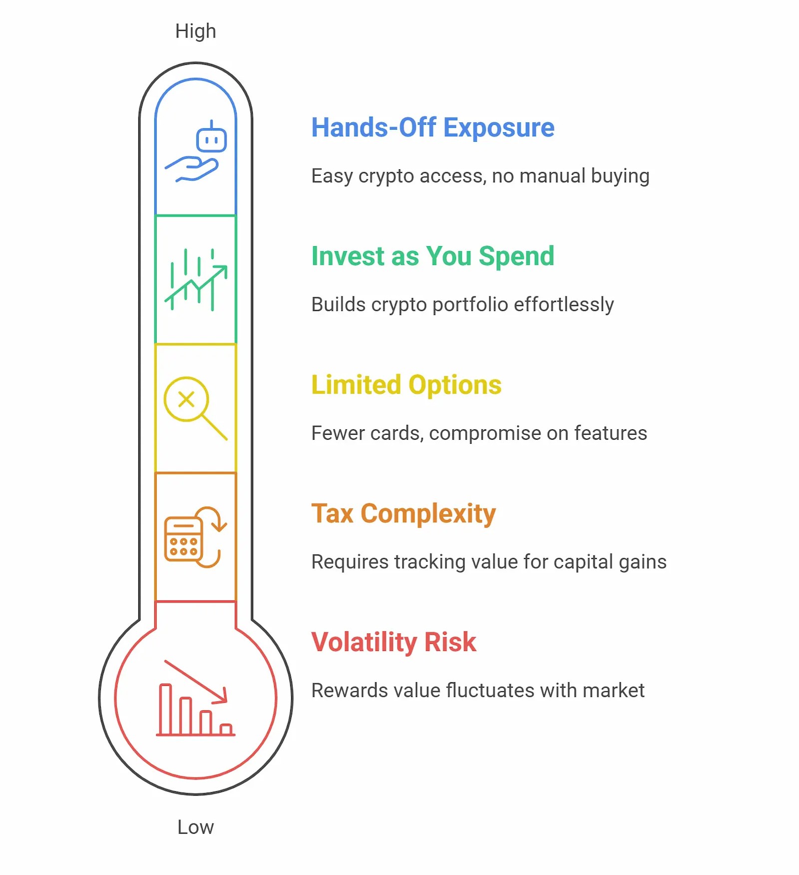 - Diversification & Novelty: Crypto rewards offer a novel alternative to traditional points or miles. If you already have plenty of cash-back or travel rewards, earning crypto is a way to diversify the “currency” of your rewards. It can also simply be more exciting for crypto enthusiasts – seeing a little Bitcoin in your account might feel more satisfying than $5 cash back.