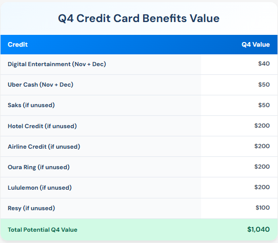Your Amex Platinum card comes with over $1,400+ in annual value, but only if you actually use the credits. With Q4 winding down, now is the time to audit which benefits you've used and which are about to expire.