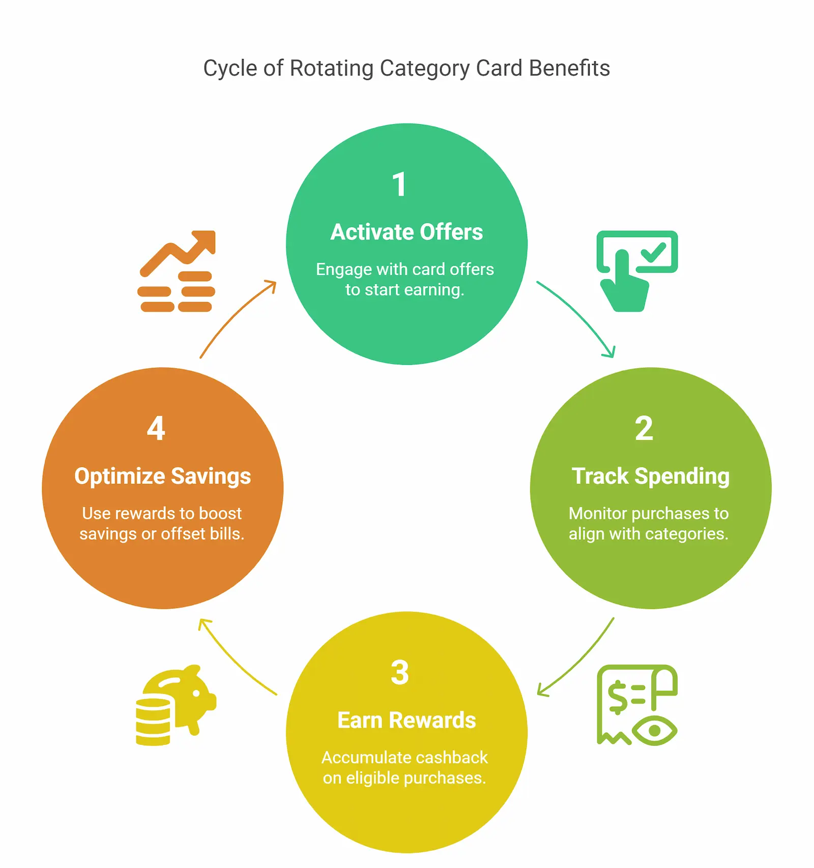 By following these tips, you’ll squeeze every drop of value out of your rotating category cards without breaking a sweat. A little organization goes a long way – soon it will be second nature to activate, switch cards for certain buys, and reap those sweet 5% rewards.