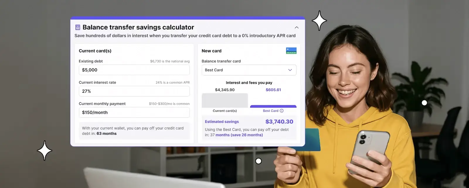 “I was skeptical about balance transfers until I used the Kudos calculator. Seeing that I could save over $3,200 was the push I needed. Six months later, I’m halfway through paying off my debt with ZERO interest!” - Sarah T., Kudos user since 2024