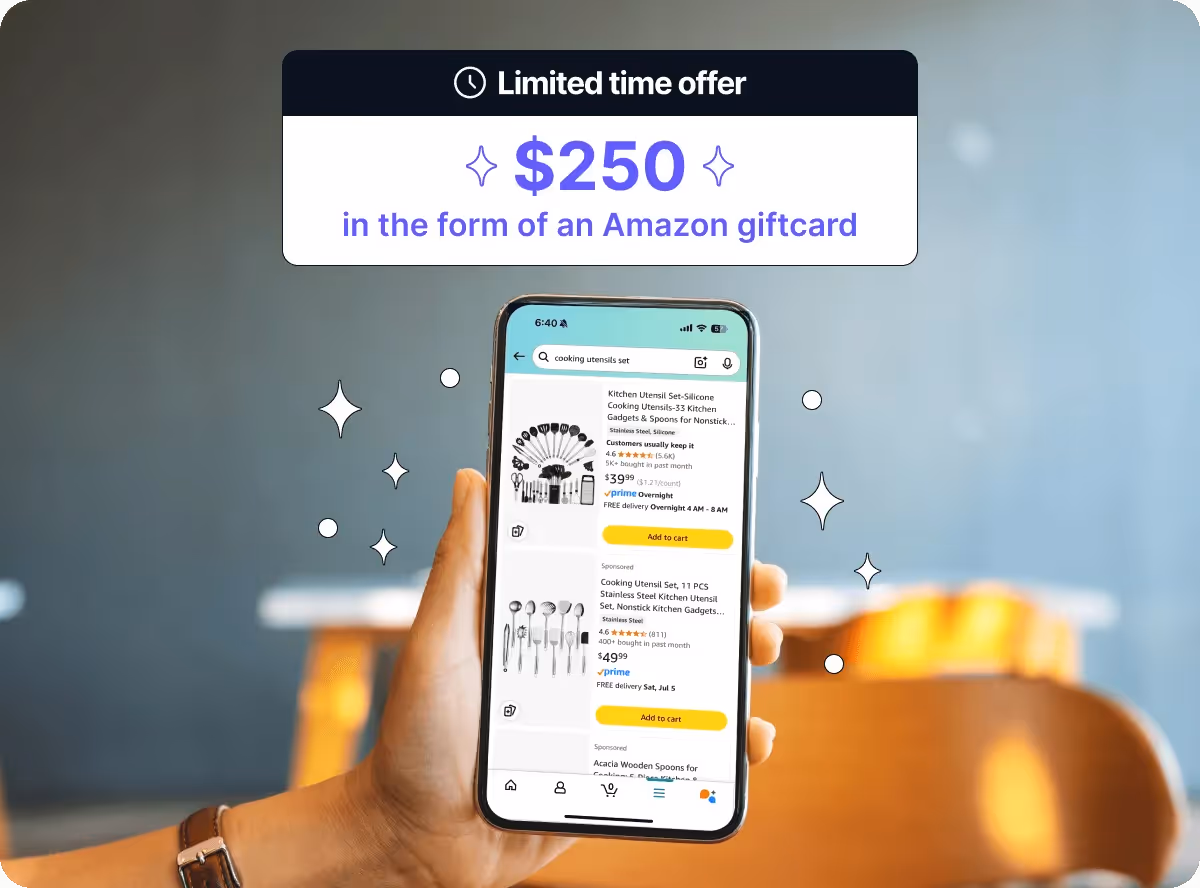 $250 Amazon Gift Card — Added to your account immediately after approval. No spending requirement. No waiting period. The gift card and your new virtual card number are available instantly, so you can start shopping on Amazon right away.