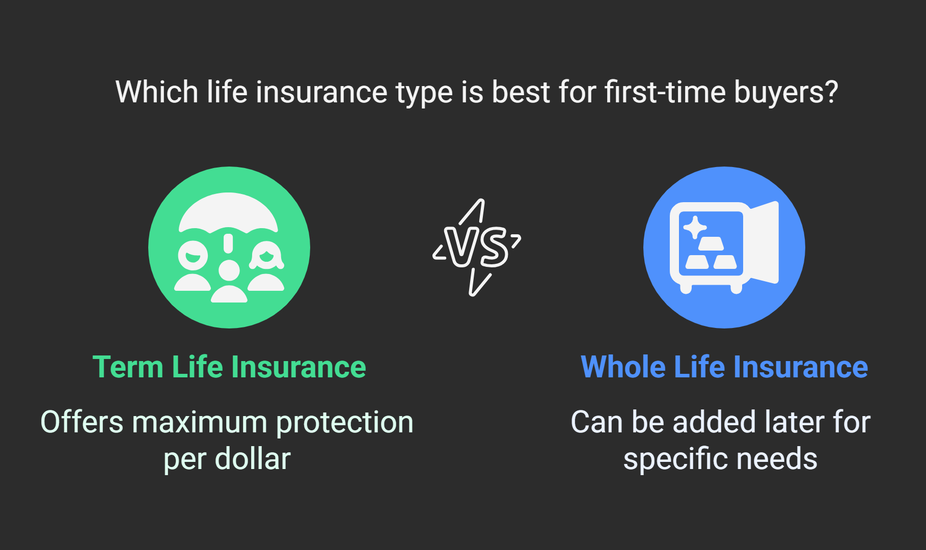 In general, for most first-time life insurance buyers with average incomes, term life insurance is the recommended starting point. It offers maximum protection per dollar and you can align the term with your family’s most financially vulnerable years. Whole life insurance can be added later or for specific purposes once the primary protection need is met.
