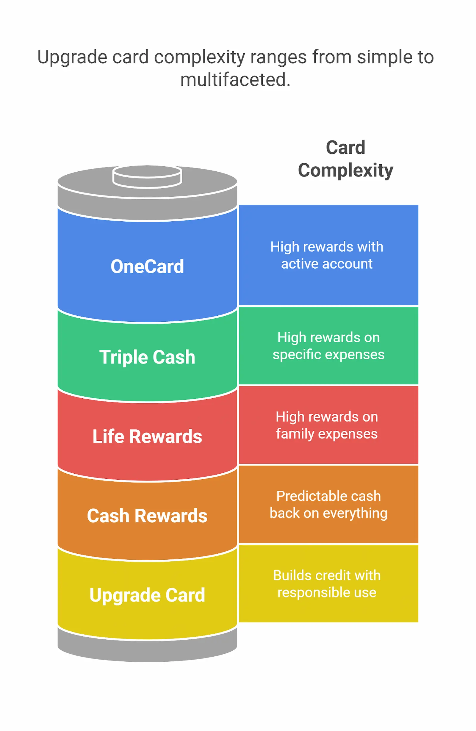 Upgrade (the company) offers five card versions: four are rewards cards and one is a basic card without ongoing rewards. Here’s a breakdown: