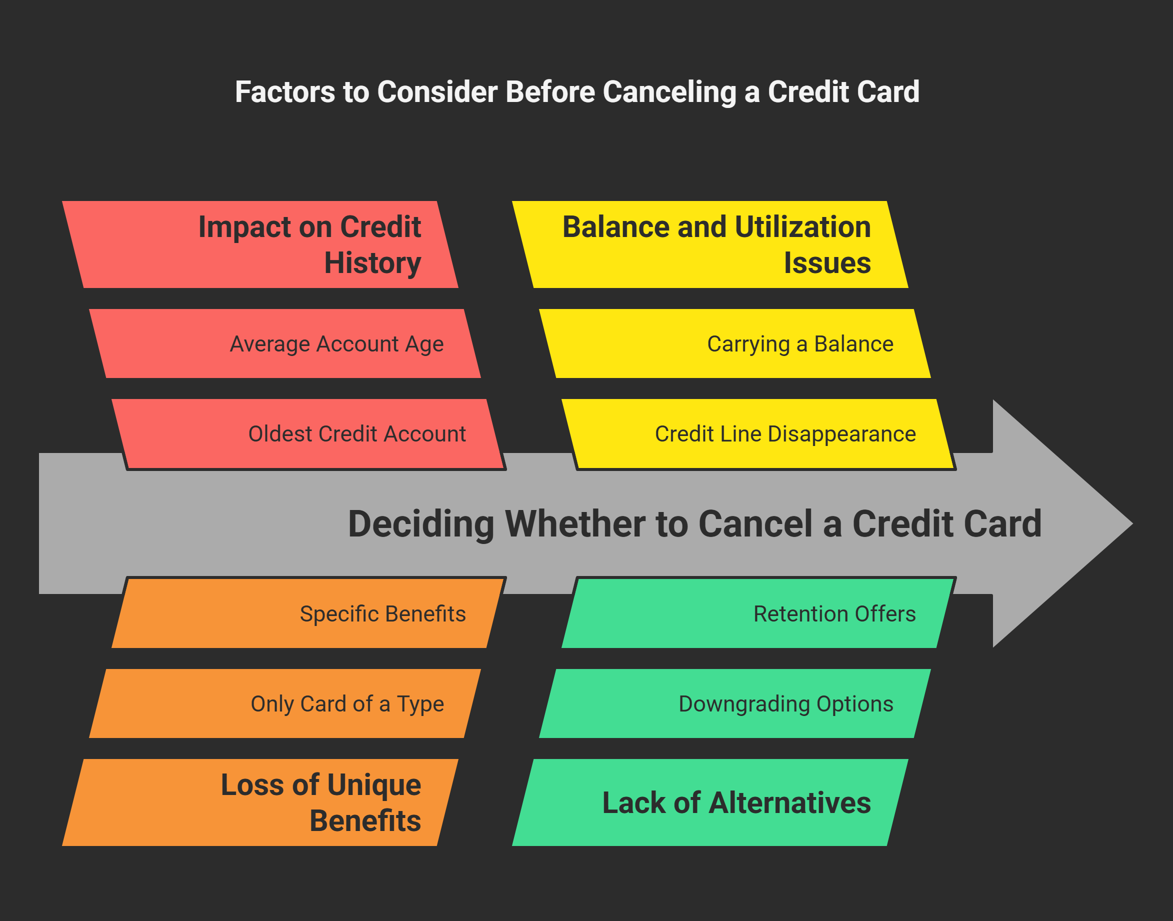 - If it’s one of your oldest credit accounts: Length of credit history is important for your credit score. By closing your oldest (or one of your oldest) cards, you risk eventually shortening your average account age. Even though a closed account can stay on your credit report for up to 10 years, once it drops off, you lose that history. Generally, avoid canceling your oldest credit card unless absolutely necessary. Keeping long-term relationships with credit issuers is beneficial.